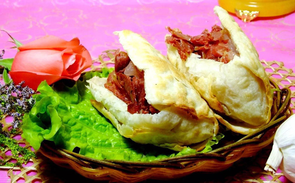 是一種面食,外表看起來像漢堡包,里面夾著驢肉,外脆內軟,濃香撲鼻。